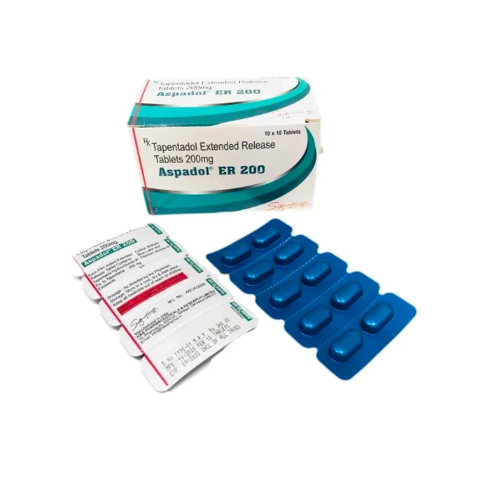 Aspadol ER 200 contains the active ingredient tapentadol, an opioid analgesic that works by binding to opioid receptors in the brain and modulating pain signals. The “ER” stands for extended-release, meaning the medication is designed to release the drug slowly over time, providing long-lasting pain relief.