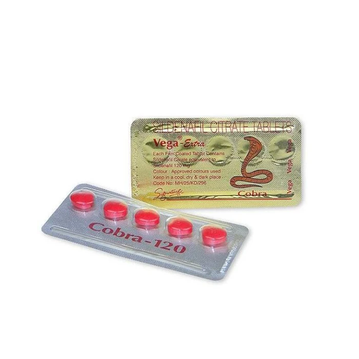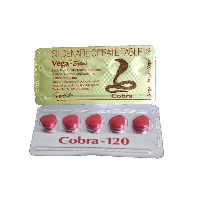 Cobra 120 mg pills have generic Sildenafil Citrate which is a potent PDE-5 hormone inhibitor. With the actions of PDE-5, the blood flow in the veins of the penis increases, and also the penile relaxes which ultimately results in having a firm erection for a longer duration.